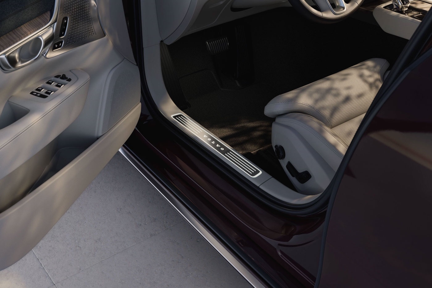 Toàn bộ táp-lô và tapi cửa được ốp gỗ thật Open-Pore Natural Ash. được xử lý bằng công nghệ mài mờ thủ công, giữ nguyên vân gỗ tự nhiên thay vì phủ sơn bóng. Volvo muốn người lái “cảm nhận vật liệu thật”, không phải lớp bóng bẩy nhân tạo.